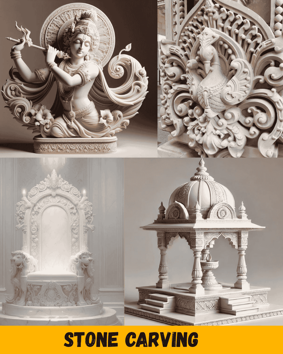 Intricate stone carvings that add a timeless, artistic touch to walls, exteriors, and interior spaces.