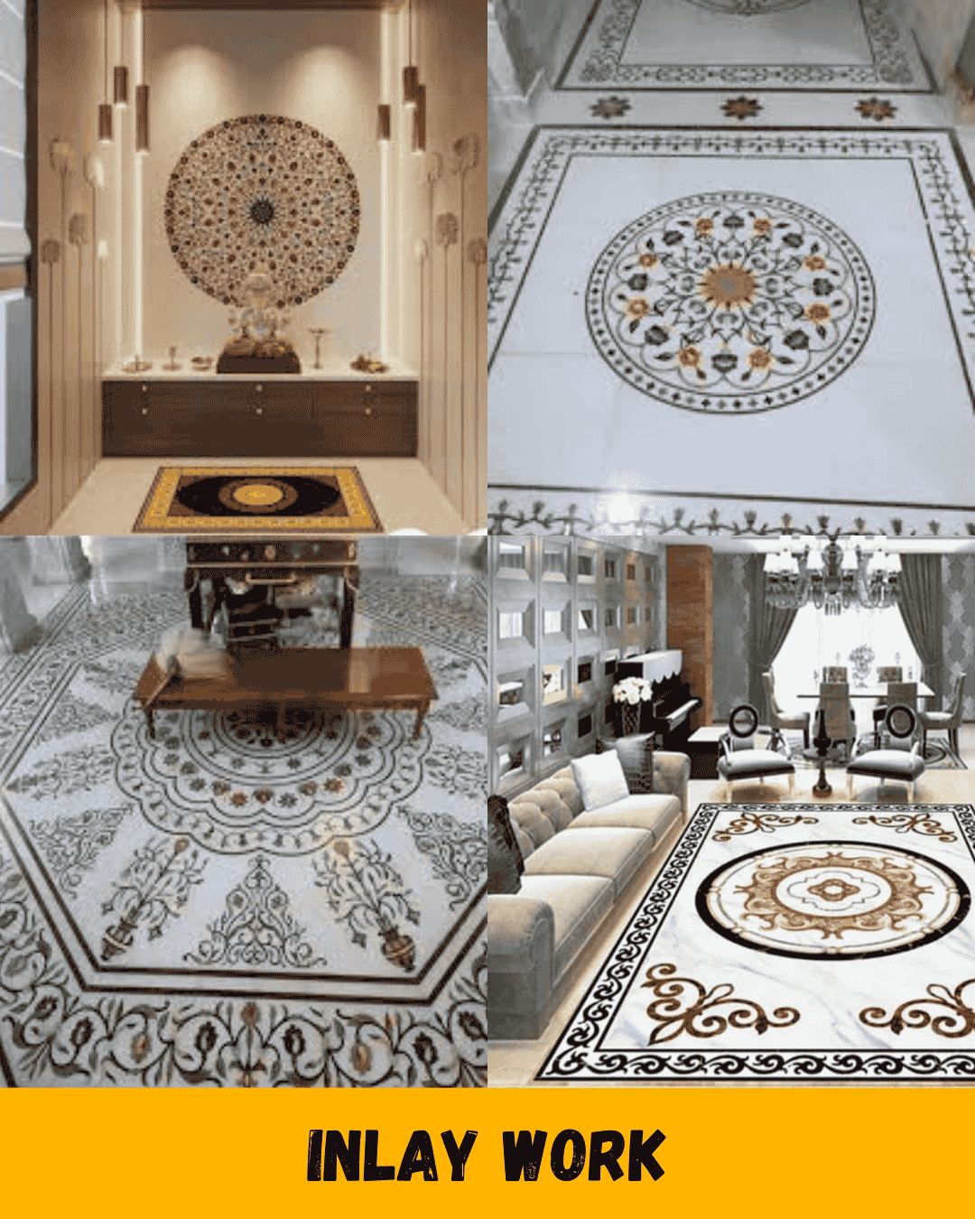 Handcrafted marble inlay with precision and beauty, perfect for luxury flooring, tables, and decor.